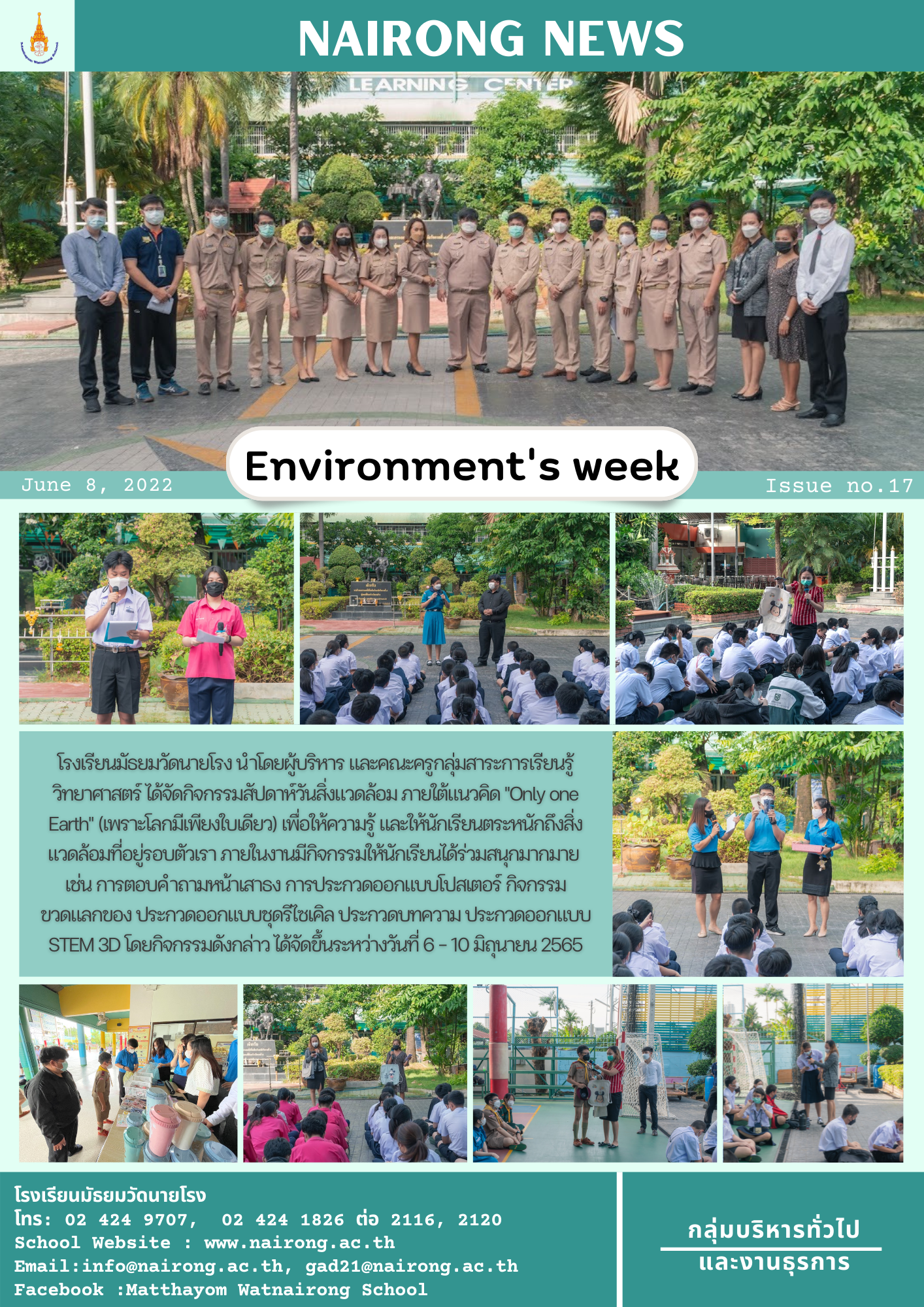กิจกรรมสัปดาห์วันสิ่งแวดล้อม ภายใต้แนวคิด “Only one Earth” (เพราะโลกมีเพียงใบเดียว)