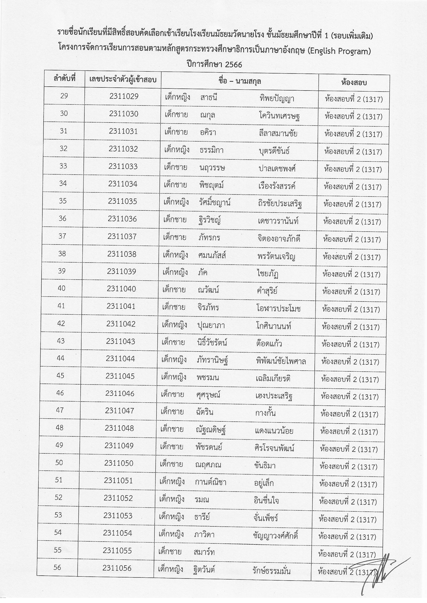ประกาศรายชื่อผู้มีสิทธิ์สอบเข้าเรียชั้นมัธยมศึกษาปีที่ 1 (รอบเพิ่มเติม) ห้องเรียนพิเศษ (EP, MEP) ปีการศึกษา 2566